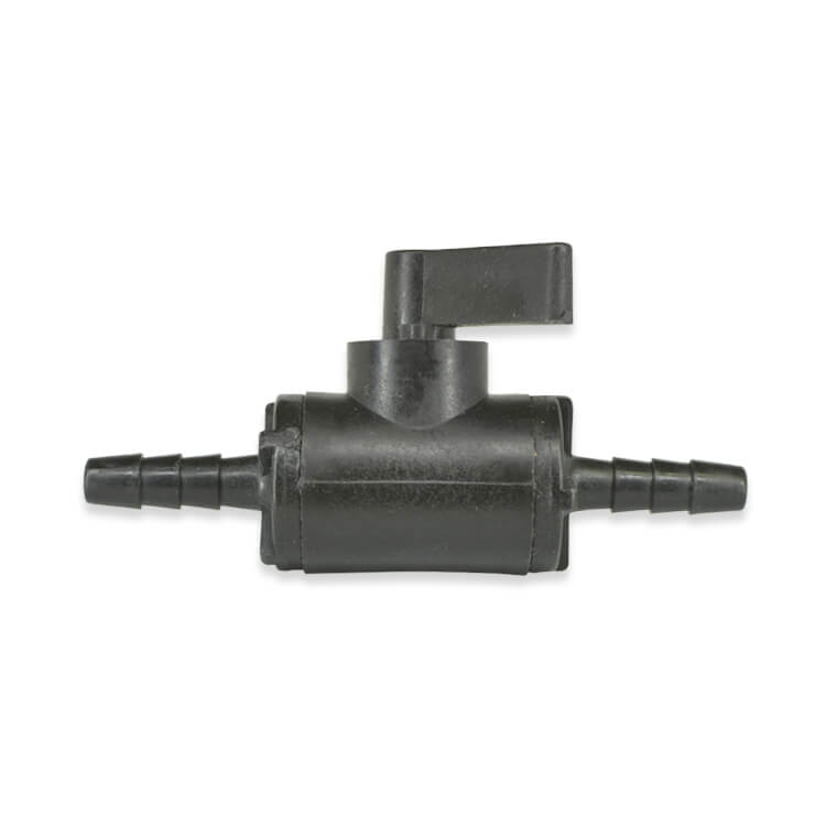 The PBV5 Series is a Two-way Ball Valve with an operating pressure of 125 psi, 140° F, with .312 thru hole in multiple configurations of Barb, Push-in, or Thread. PVC and White Filled Polypropylene materials used for chemical resistance applications are NSF Standard 42 Certified. MakroBlend® (a Polycarbonate and PBT blend) is an NSF Standard 51 certified material. An optional Panel Mount is available for a .750 thru hole and comes with a Brass knurled nut or Electroless Nickel-plated Hex mount nut. The Flag Handle comes standard with an optional round Knurled Handle. The maximum panel is .125