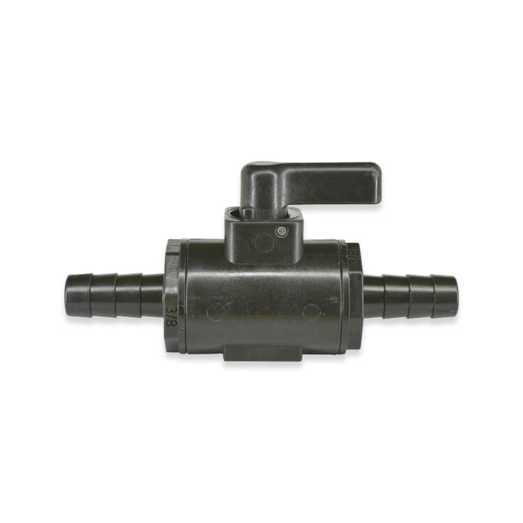 Item # PJV-38B, PJV Series 3/8 Inch (in) Barbed Glass-Filled Polypropylene Micro Ball Valve with Fluoroelastomers (FKM) Seals