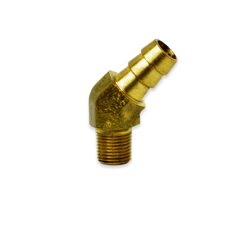 The BHME45 series is a forged brass multi-barbed 45º elbow with male NPT threads. Flow can be equal or reduced.