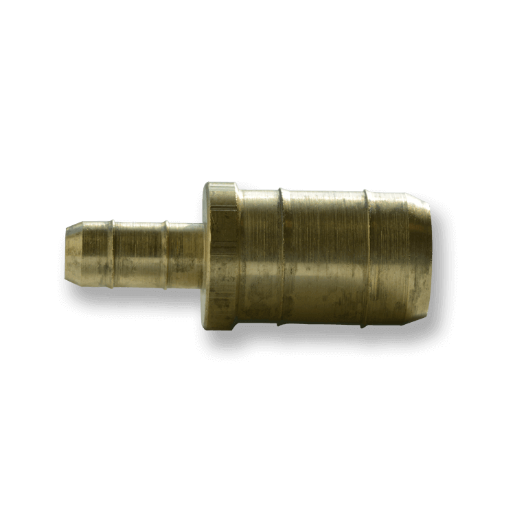 The DC Series Brass bite-style multi-barb male connector comes in barb sizes of 5/32 inch, 1/4 inch, 3/8 inch, and 1/2 inch for ID tube sizes of 0.096 inch, 0.170 inch, 0.250 inch, and 0.375 inch. Also available in a reducer connector. The barb sizes for the reducer connector are 1/4 inch by 5/32 inch, 1/4 inch by 3/8 inch, 1/4 inch by 1/2 inch, and 3/8 inch by 1/2 inch for ID tube sizes of 0.096 inch, 0.170 inch, 0.250 inch, and 0.375 inch. Working temperatures are from -65ºF to 90ºF. The maximum working pressure is 150 psi. Made for Polyethylene tubing.