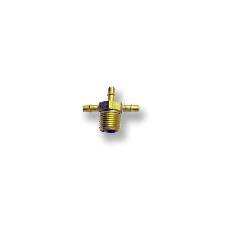 MAT series are brass male tee adapters with bite-style barb sizes ranging from 1/16 inch to 1/4 inch. Any different barb size can fit on any different hex.