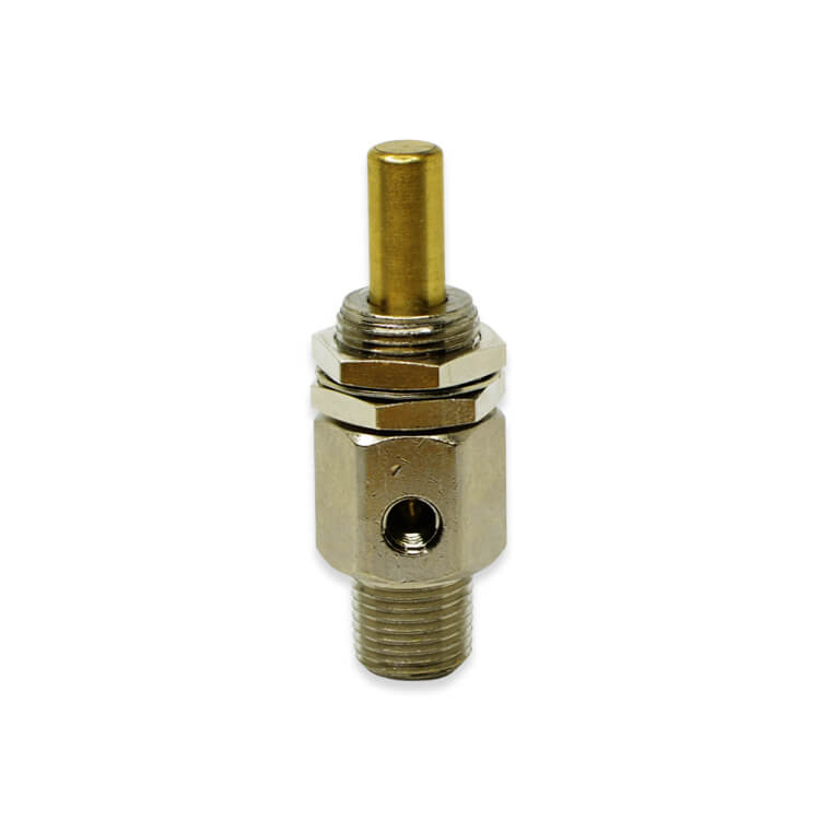 Mini Brass 90º Needle Valve with an inlet of 1/8" male threads. Outlet sizes are female 10-32 threads, male 10-32 threads or 1/16", 1/8", and 3/32" barbs. Available seals are Buna-N, EPDM, and Viton®. The maximum operating pressure is 125 psi, maximum operating temperature is 180º F. Panel mount is standard. This Needle Valve is also available with female 10-32 UNF inlet and outlet threads. The barb sizes are the same as for the male Needle Valve. The black ABS knobs are standard, removable knobs.