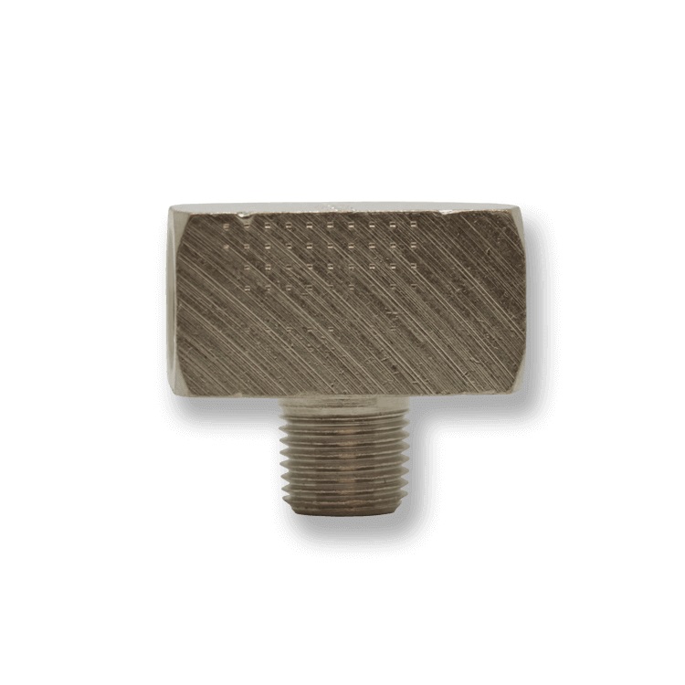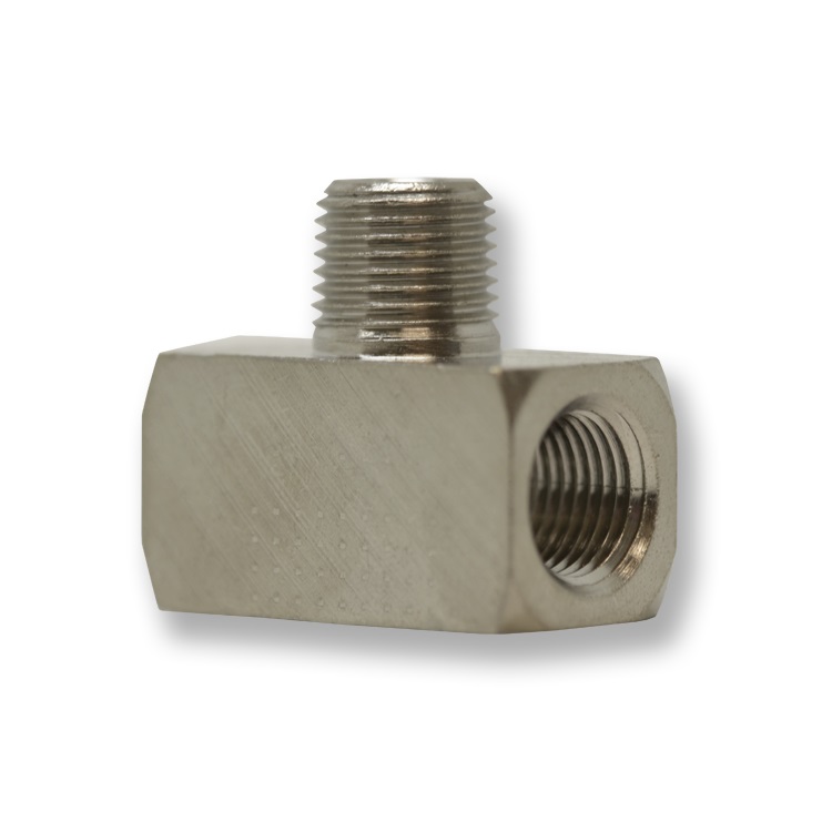 Item # MBT-6M6F, 3/8 Inch (in) Male National Pipe Thread (MNPT) and 3/8 Inch (in) FeInch (in) Male National Pipe Thread (FNPT) Male Branch Tee