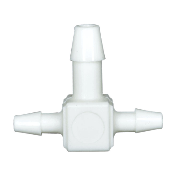 TR-C Series is a commercial-grade, single-barbed Tee connector. It is available in White Nylon. Barb sizes available are 1/8 inch by 3/16 inch, 1/8 inch by 1/4 inch, 5/32 inch by 3/16 inch, and 5/32 inch by 1/4 inch. Reducing barb sizes: 5/32 inch by 1/16 inch.