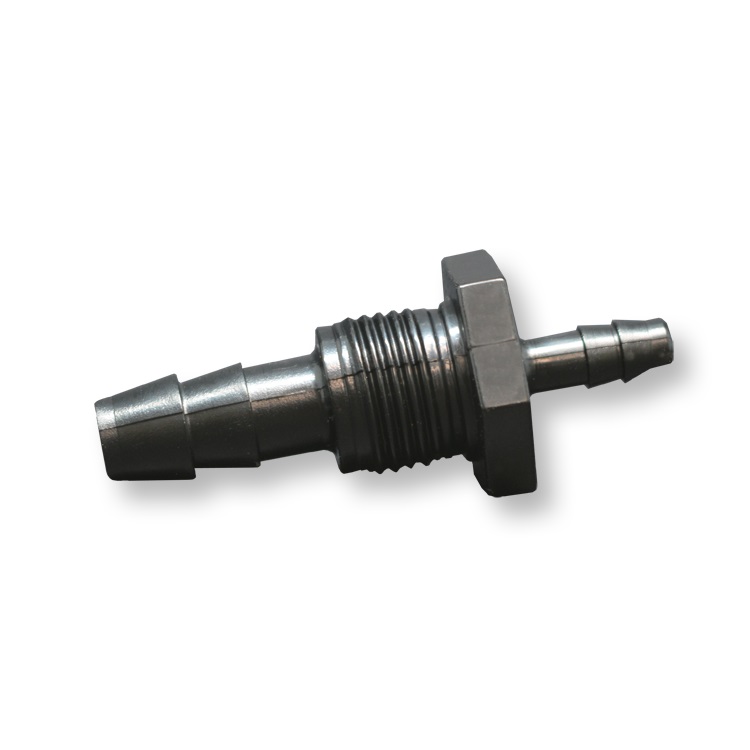 The BHUDC Series Bulkheads are Manufactured by Pneuline Supply, Inc. in-house and offer a unique flatted side for a Greenlee D punch, thus avoiding the possibility for the Bulkhead to turn. Bulkheads are assigned sizes from the outside of the panel to the inside. Available in 1/8 inch, 1/4 inch, and 3/8 inch Hose Barb sizes, or any combination. The 3/8 inch panel fitting does not have a flatted side. Also, the materials available are Natural Nylon, Black Nylon, Polypropylene, PVDF, and Acetal. Zinc-plated nuts are available for Nylon bulkheads, and Nylon nuts are available for all other bulkheads.