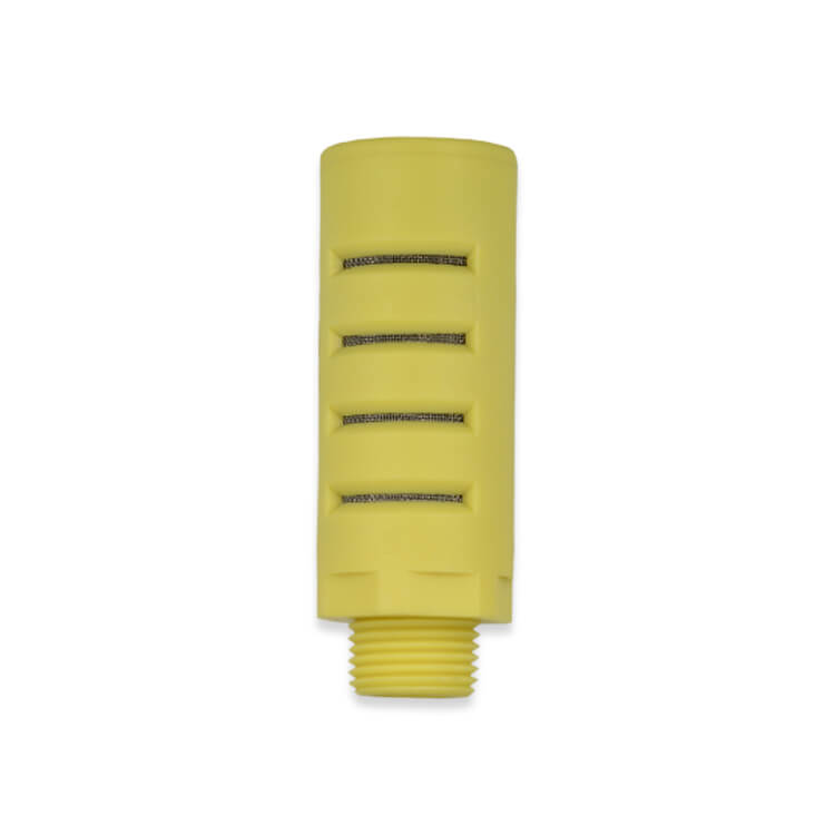 The PMP series is a high-flow muffler that is made of glass-filled nylon with a 50 mesh stainless steel screen. It is available with Male NPT threads of 1/8", 1/4", 3/8" and 1/2"