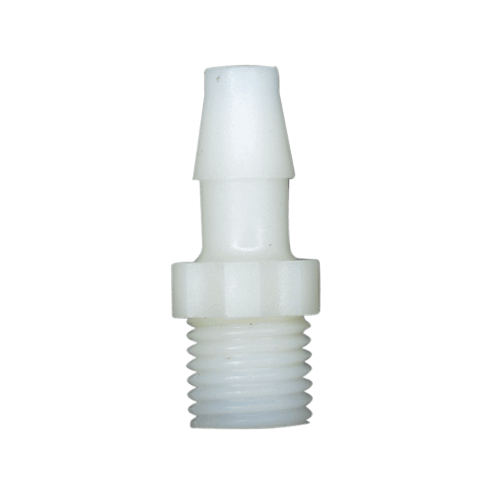 USTA series is a male UNF straight thread adapter with 5/32" barbs. This product is made out of Acetal.
