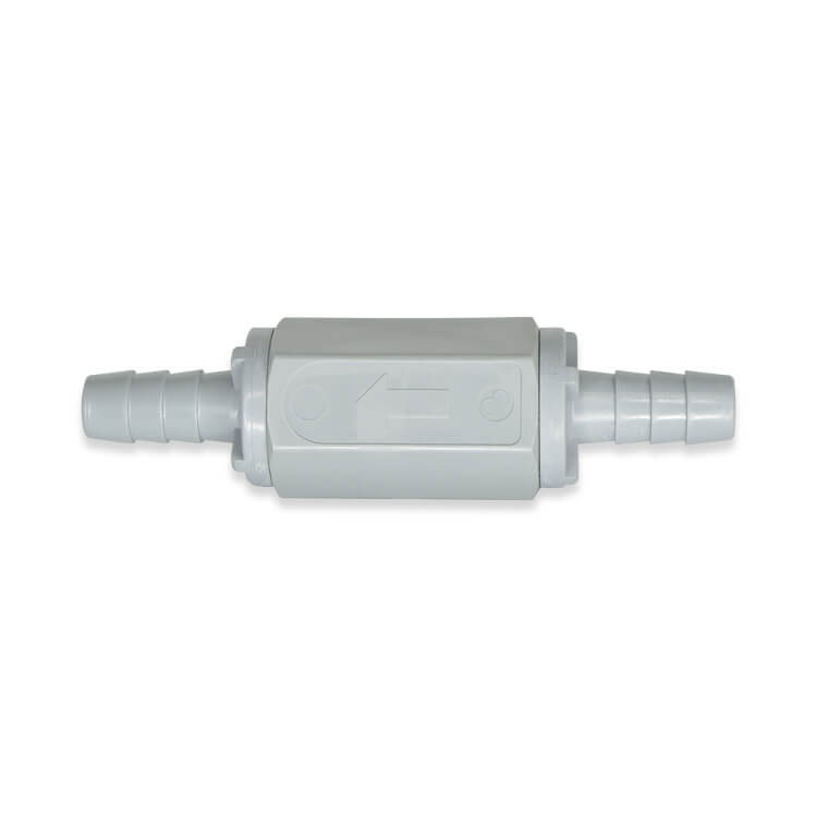 The SPC series plastic are PVC, polypropylene, nylon plastic check valves and have 302 stainless steel springs, 316 stainless steel balls, and EPDM seals. 1 psi spring is standard with optional 1/3, 3, 5, 7, 10, or 12-pound springs. Available in barbs, MNPT, FNPT, Push-in connections with multiple combinations. Hastelloy® spring, PTFE ball, and FKM O-rings for aggressive environments are available.