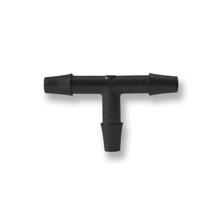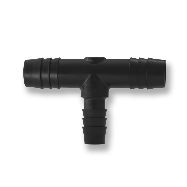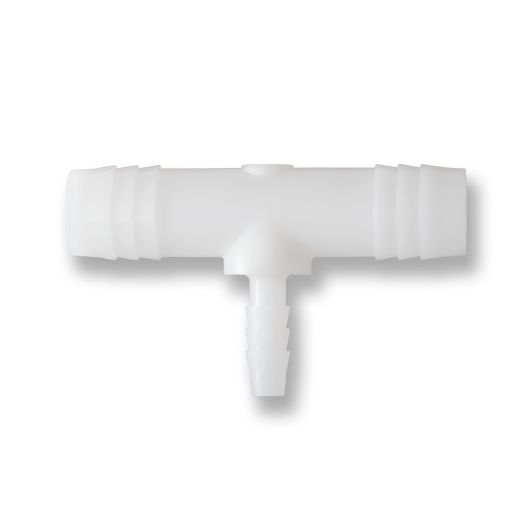 The T series is a series of plastic single and multi-barbed tee connectors. This series is available in NSF-listed natural nylon, black polyethylene, and FDA-listed natural black polypropylene. Equal and reducing barb sizes ranging from 0.170 inches to 1-1/2 inches are available. Barb sizes over 1 inch are not available in polyethylene.