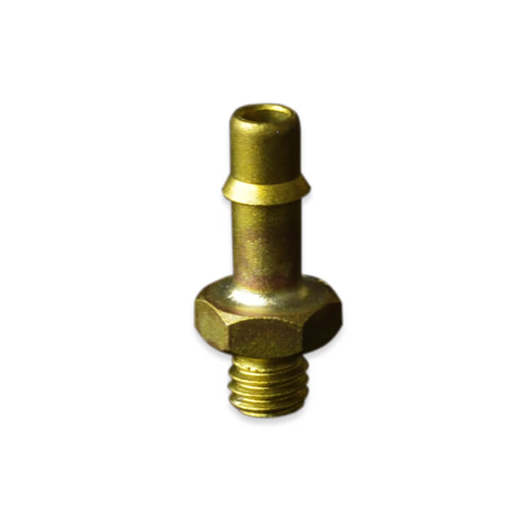 UNF Threads to Bite-Style Barbs in Brass Available in 3-56 6-32 8-32 10-32 1/4-20 1/4-28 5/16-24 Metric sizes of: M3X.5 M5X.8 M6X1 M10X1 M8X1.25 Barb Sizes .045(364B) .062(1B) .078(78B) 3/32(332B) 1/8(2B) 5/32(532B) .170(170B) 3/16(3B) 7/32(732B) 1/4(4B) 5/16(5B) Furnished with fiber gasket. Also available with an O-ring (O) or captive gasket (CG). The standard O-ring is Buna. All units can be nickel-plated. 303 stainless is available. Orifices are available in all fitting combinations Order Example: MAU-12X1B